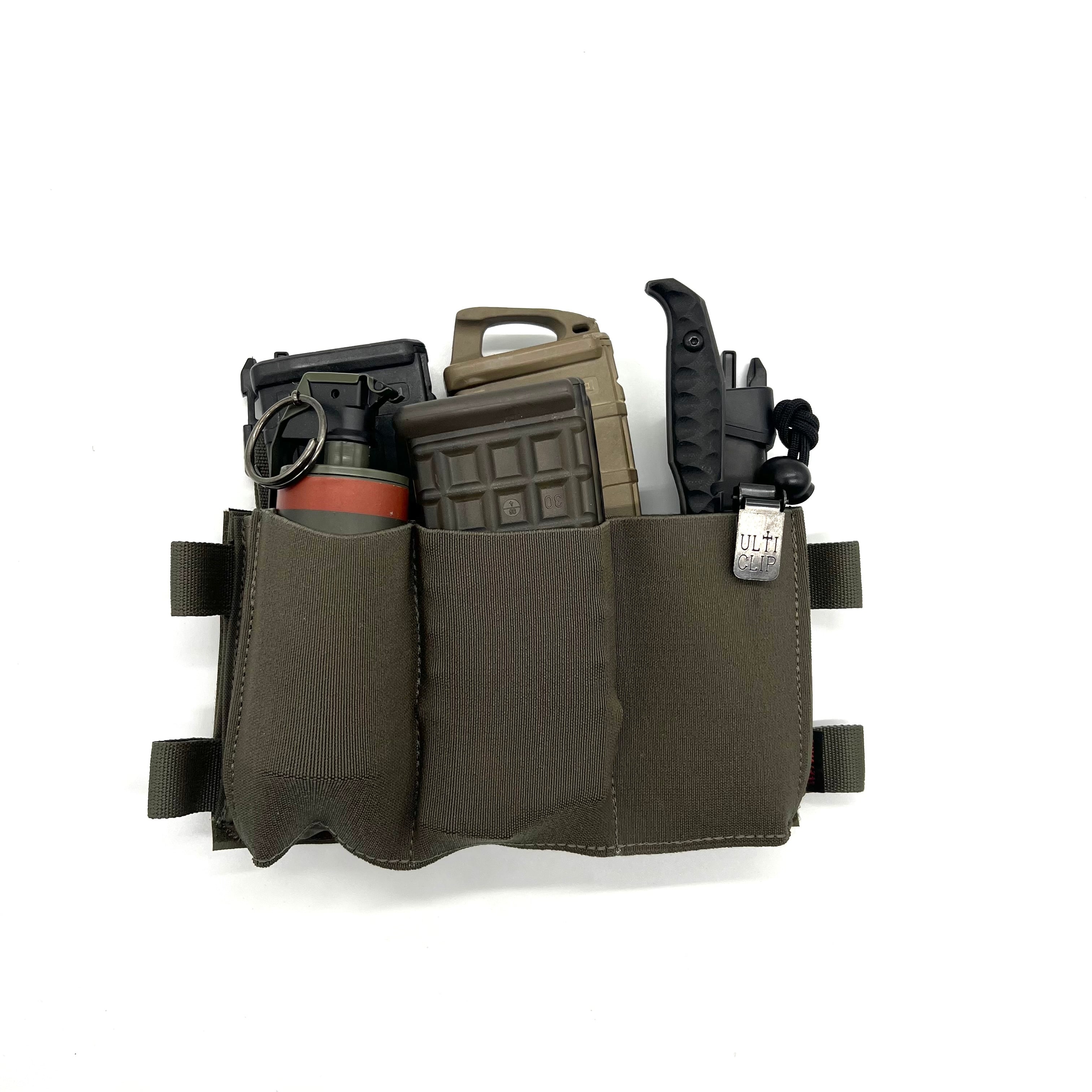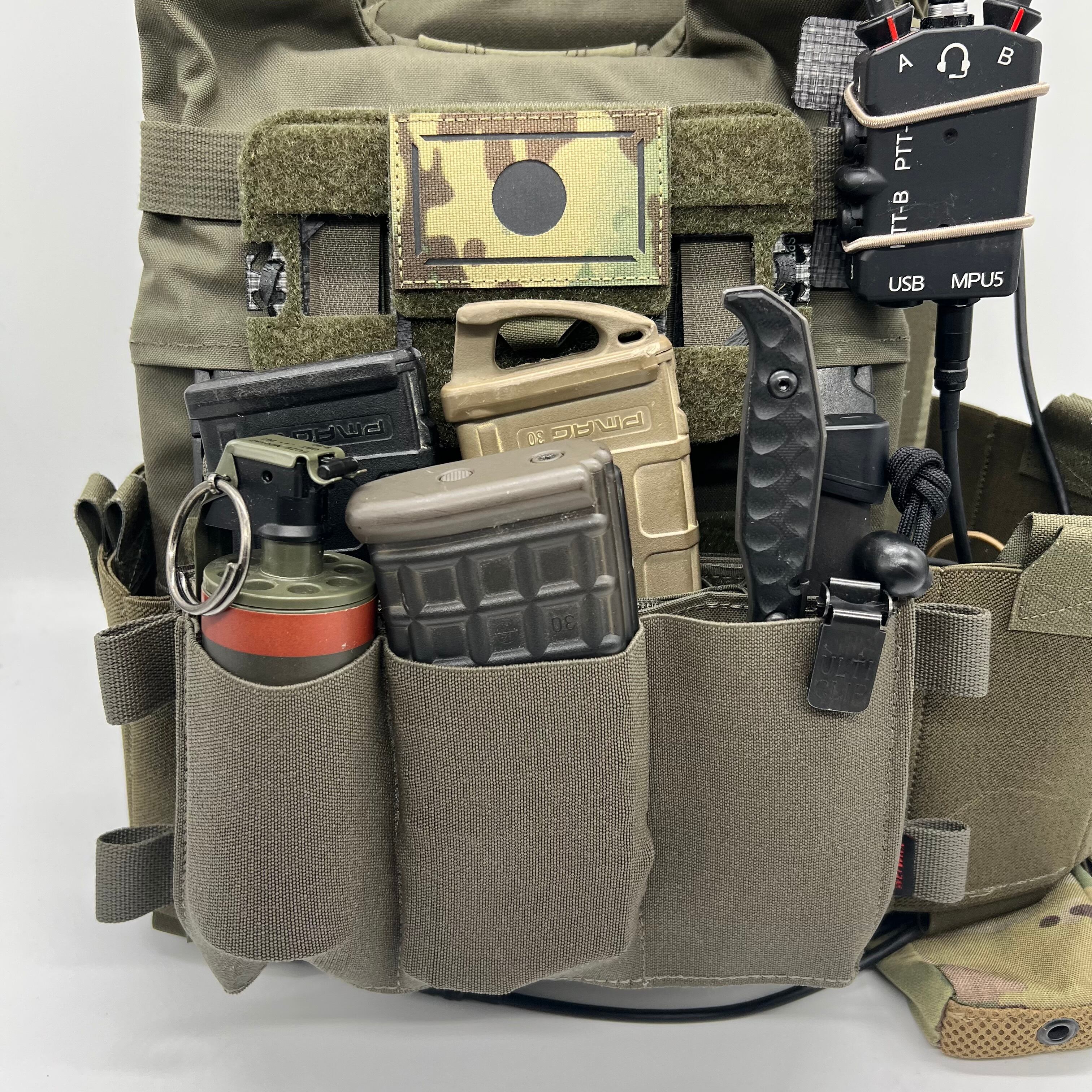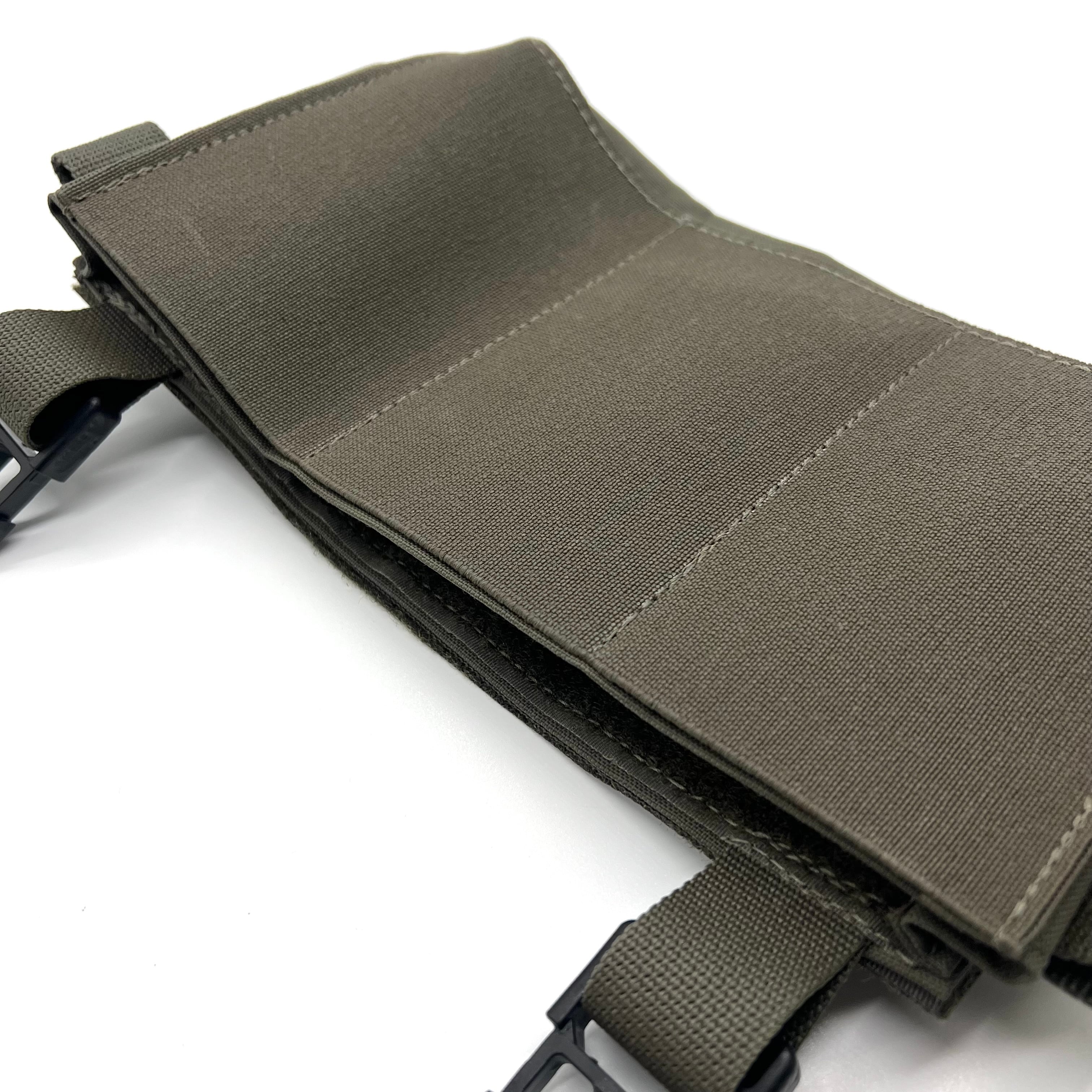スピリタススタイル(前後オスベルクロ)のインサートを収納可能なプラカードの前面に5.56mmマガジンサイズのトリプルエラスティックポケットを装備。