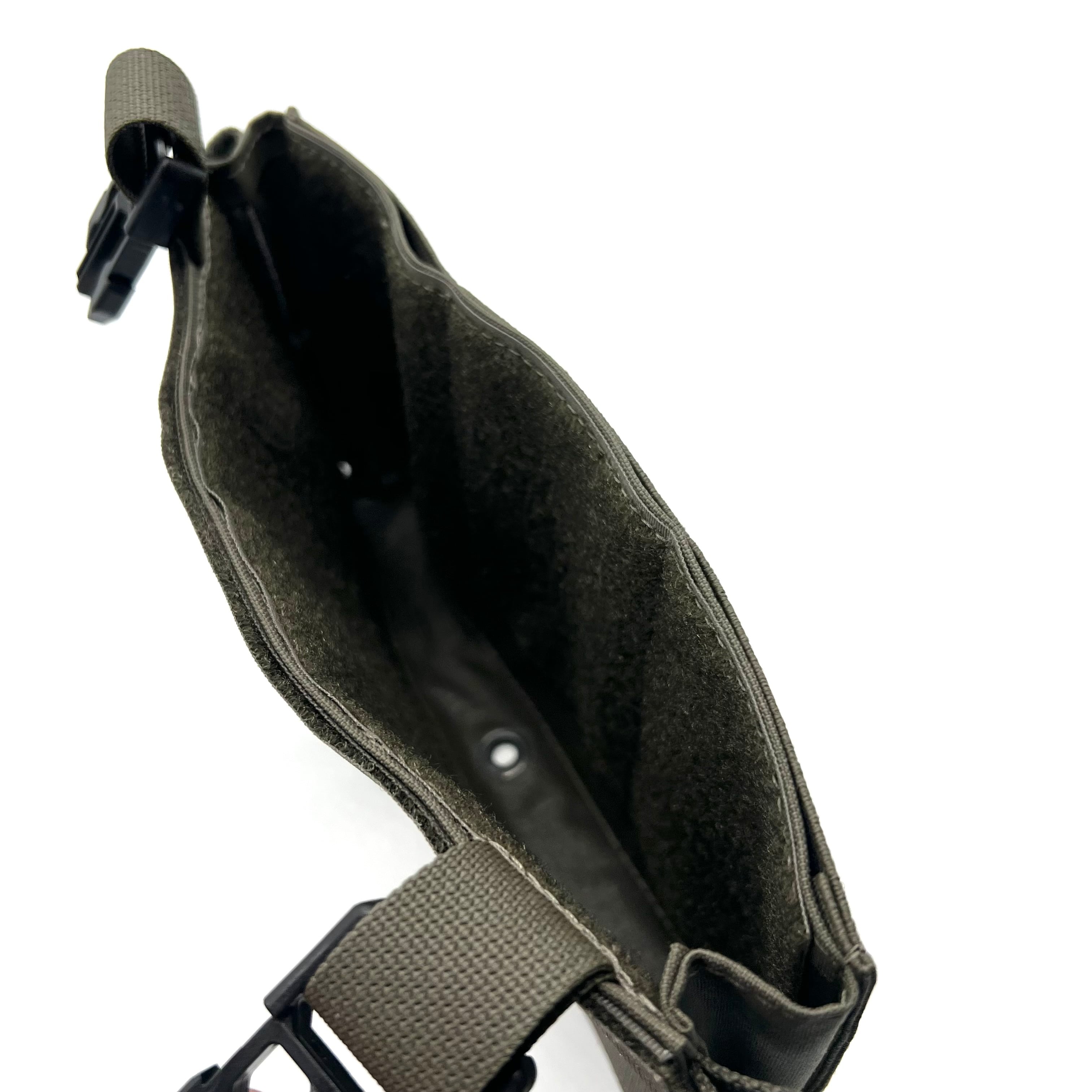 さらに、ベルクロの背面パネルにより、プレートキャリアにプラカードとして取り付けたり、アフターマーケットのウイングポーチやダングラーポーチを簡単に追加可能です。