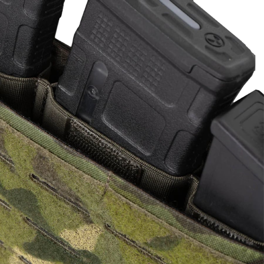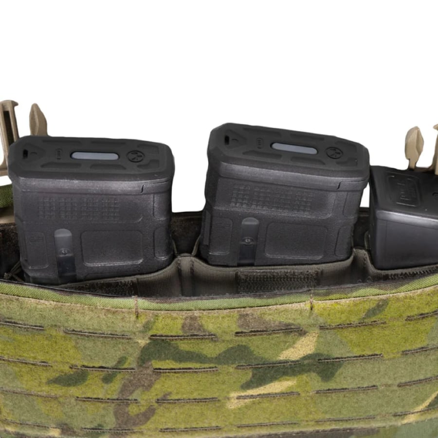 ダブルライフル/ピストルインサートは、伸縮性のあるリテンションシステムにより AR / M4 マガジンを2本とピストルマグ1本を確実に保持し、必要なときに素早くアクセス可能です。