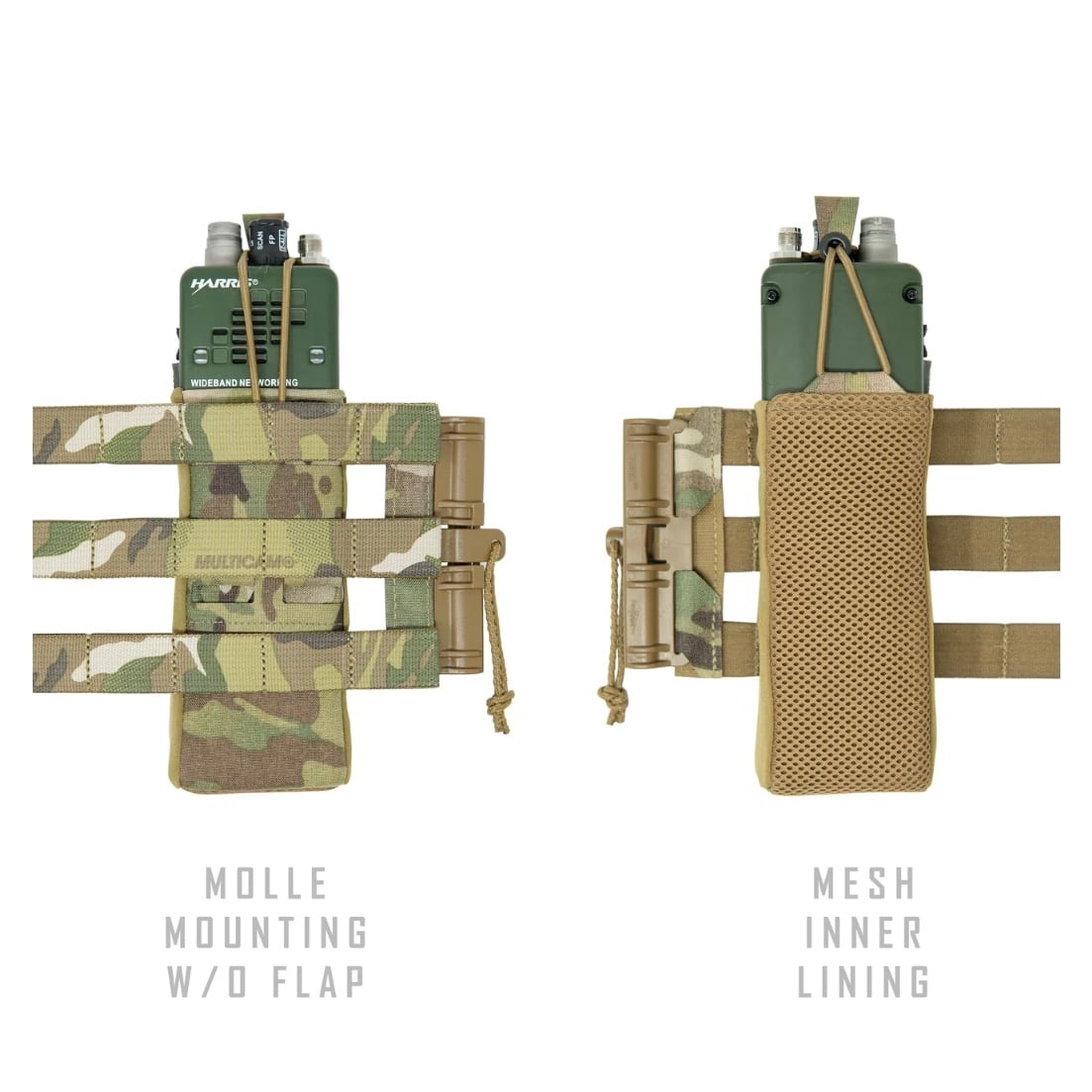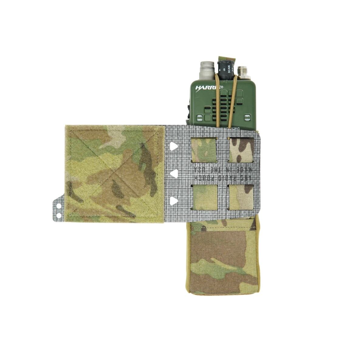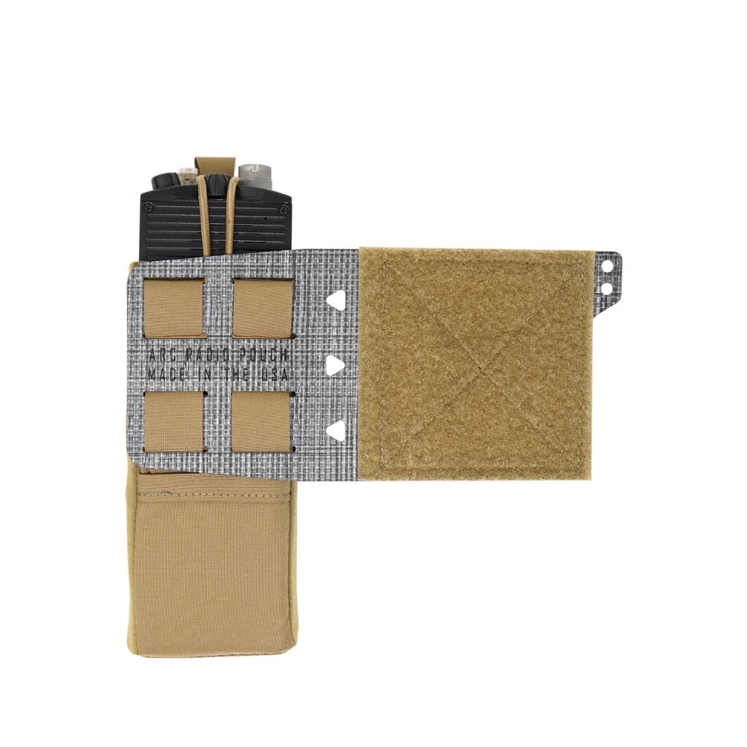 ARCラジオポーチは、PRC148やPRC152のようなミリタリーサイズの無線機を、カマーバンドの下に快適かつ合理的に収納できるように設計されています。