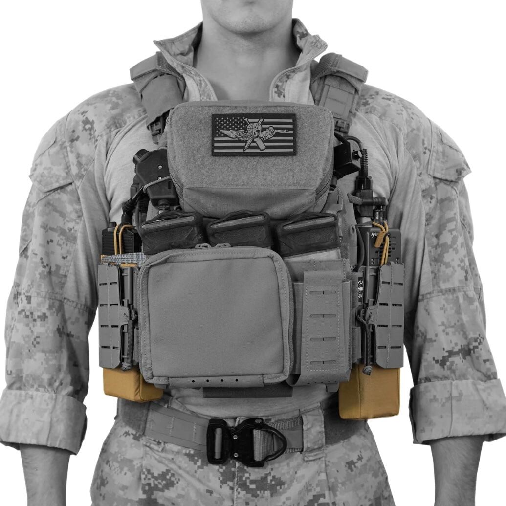 プレートキャリアやチェストリグのサイドウイングになるティグリスマウントに装着しますが、MOLLE対応のカマーバンドの内側にポーチ単体で直接装着することも可能です。