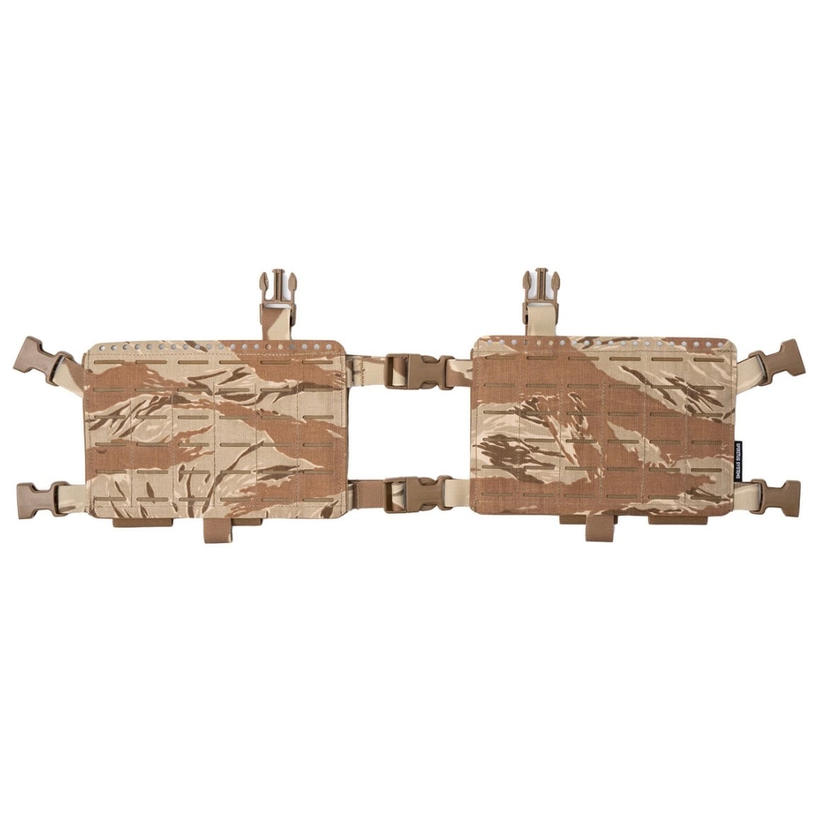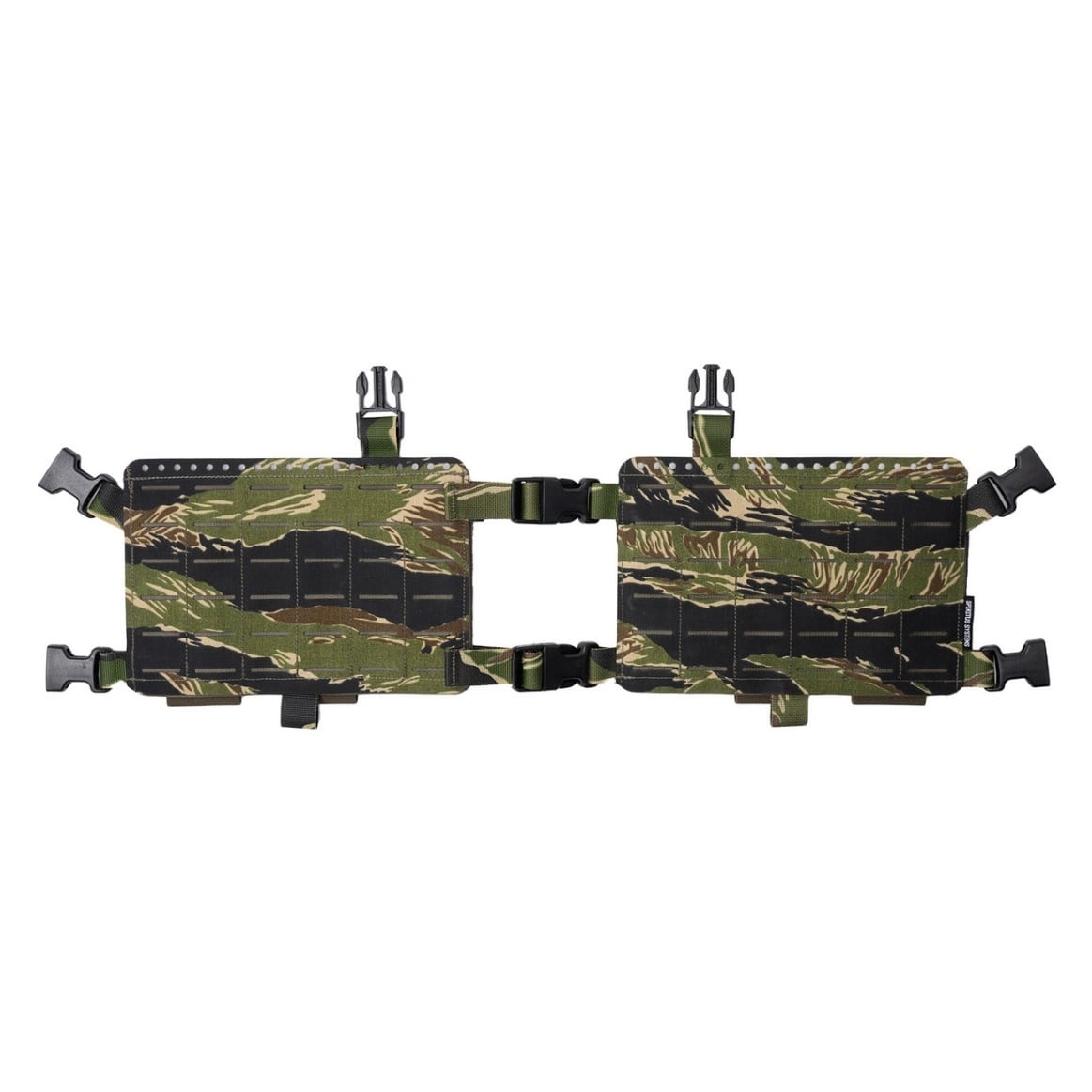 チェストリグパネルは2つのスライド式Fastexバックルで接続され、オープンフロント構成を必要とするアクティビティ(プローンへの移行など)の際に片手で素早く開閉することができます。
